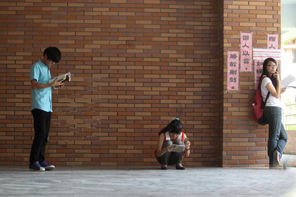 臺灣地區大學指考第二天,考試開始前考生在場外溫書。(圖片來自臺媒)
