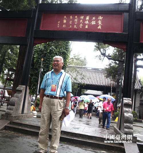 前臺軍上將、三椽畫塾指導顧問季麟連在直隸總督府內拍照留念。(中國臺灣網 高斯斯 攝)