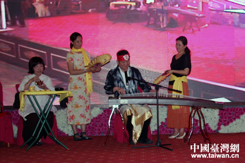 聯歡會上,第五車演出“瘋狂音樂劇:涿鹿大戰“劇中炎帝彈得一手好古箏(中國臺灣網 蕪同 攝)