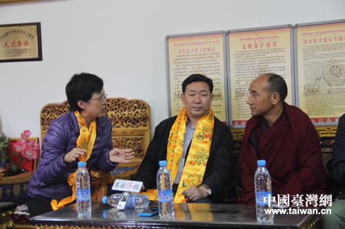 郎木寺管委會主任洛藏加措向記者們介紹情況(中國臺灣網(wǎng) 齊曉靖 攝)