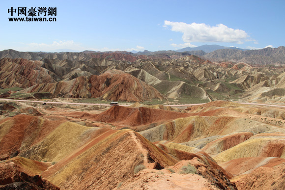“海峽兩岸記者西北行”聯合采訪團參訪張掖丹霞國家地質公園,感受中國第一七彩丘陵神奇景觀。(中國臺灣網 王文英 攝)
