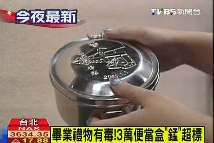 中國臺灣網8月1日消息 據臺灣TVBS電視臺報道,為慶祝幼兒園學生畢業,新北市府發給3萬名學童,一人一個不銹鋼便當盒當禮物,結果被測出錳含量超標5倍。