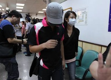 何江忠緊抓著妻子的手穿著便服到庭。(圖片來自臺媒)