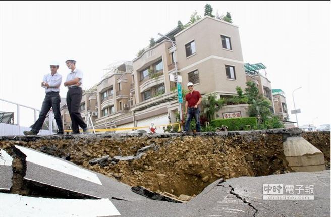 馬路塌陷兩米深,像是經(jīng)歷大地震一般,讓人看了怵目驚心。(圖片來自臺媒)