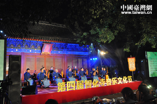 為弘揚中華民族傳統文化,加強兩岸文化交流,進一步宣傳與展示非物質文化遺產,由北京市文物局、北京市臺灣同胞聯誼會主辦,北京文博交流館承辦的第四屆智化寺音樂文化節于近日舉行。2013年9月16日在智化寺舉辦的“花好月圓”音樂晚會是此次音樂文化節的重要環節。(北京市臺聯 趙輝 攝)