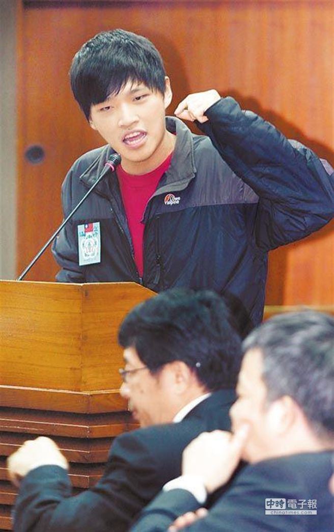 臺灣清華大學延畢生陳為廷(左)去年12月,在臺灣“立法院”怒批當局“教育部長”蔣偉寧(中),引發正反意見爭論。(圖片來源:臺灣中時電子報)