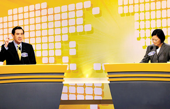 2010年4月25日,國民黨主席馬英九和時任民進黨主席蔡英文就兩岸經濟合作框架協議(ECFA)進行了一場全臺直播的電視辯論。(圖片取自網絡)