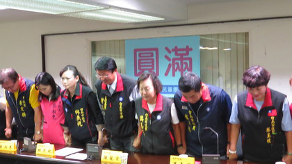 臺南市議會國民黨團26日上午開“圓滿”記者會向支持守護銅像的社會大眾鞠躬感謝。(圖片取自臺媒)
