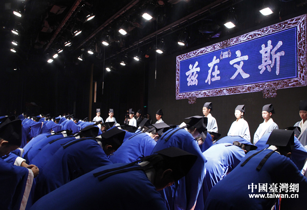 中國臺灣網9月28日北京消息 9月28日是孔子誕辰日。北京市第六屆中華文化快車——2013年兩岸青少年中華國學文化課堂交流活動在北京四中舉行。來自臺灣新竹忠信等6所學校和北京四中等西城區10所學校的中小學師生代表700余人齊聚一堂,舉行祭拜孔子儀式、國學禮儀短劇表演、專家國學講座等活動,領略中華民族國學文化的博大精深,共同弘揚和傳承中華民族優秀傳統文化。