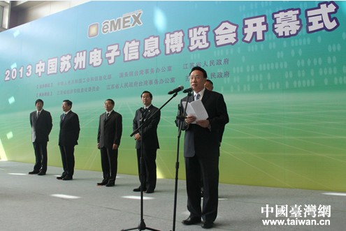 中國臺灣網10月16日蘇州消息 以“智慧生活 觸動你我”為主題的2013年第12屆中國蘇州電子信息博覽會今(16)日在蘇州國際博覽中心開幕。海協會會長陳德銘,工信部副部長楊學山,國臺辦主任助理李亞飛等出席開幕式。