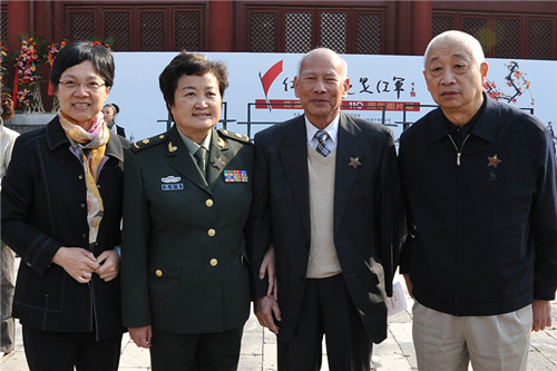 照片中人物從右至左為:陳賡之子陳知建、黃埔軍校同學會會長林上元、陳賡之女陳知進、黃埔軍校同學會副秘書長鄭琴(主辦方供圖)