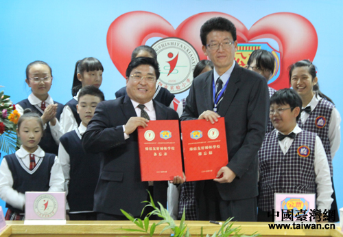 中國臺灣網(wǎng)10月26日沁陽消息 10月26日下午,河南省沁陽市實驗小學(xué)校長張立強(qiáng)與臺灣曹公小學(xué)校長彭連煥代表兩校共同簽署了締結(jié)友好姊妹學(xué)校備忘錄,兩岸小學(xué)正式締結(jié)為友好姊妹學(xué)校。這是河南省內(nèi)首所與臺灣小學(xué)締結(jié)友好關(guān)系的學(xué)校。
