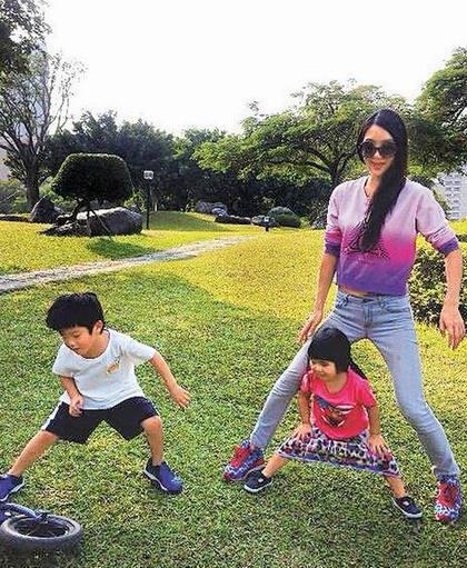 曹格的妻子吳速玲(右)昨帶著兒女在中部親戚家附近踏青散心。(臺(tái)媒圖)