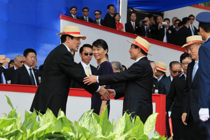 今年10月10日的“雙十慶典”上,王金平與馬英九在“九月政爭”后首度公開互動,備受外界關注。(圖片取自臺媒)