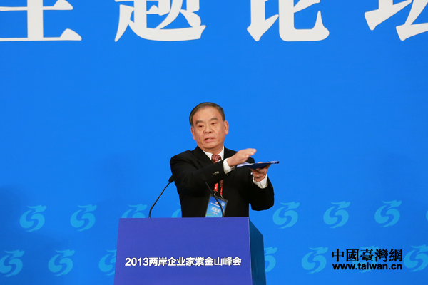 兩岸企業(yè)家峰會文化創(chuàng)意產(chǎn)業(yè)合作推進小組召集人(大陸)呂祖善出席“2013兩岸企業(yè)家紫金山峰會”主題論壇并發(fā)言。(中國臺灣網(wǎng) 王偉 攝)