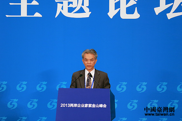 以“兩岸產(chǎn)業(yè)合作新局:挑戰(zhàn)與對策”為主題的2013兩岸企業(yè)家紫金山峰會4日在南京開幕。圖為在5日上午舉行的主題論壇上,臺灣工業(yè)技術(shù)研究院董事長蔡清彥以“科技啟動合作,共創(chuàng)美好未來”為題目進(jìn)行演講。(中國臺灣網(wǎng) 王偉 攝)