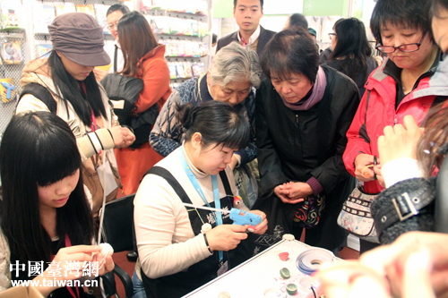 埔里造紙龍已經(jīng)不是第一次來文博會,展位前依然圍滿了前來體驗(yàn)其奇妙工藝的大陸民眾。(中國臺灣網(wǎng) 楊麗 攝)
