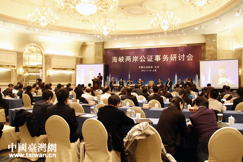 由中國公證協會主辦的以“兩岸繁榮與公證發展”為主題的海峽兩岸公證事務研討會11月16日在上海召開。(中國臺灣網 王怡然 攝)
