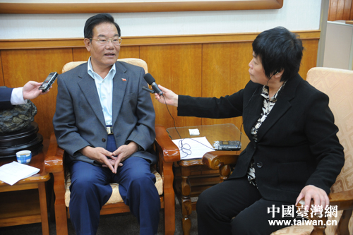 記者采訪澎湖縣長王乾發。(李建偉 攝)