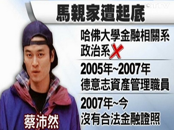中國(guó)臺(tái)灣網(wǎng)12月27日消息 據(jù)臺(tái)灣“東森新聞”報(bào)道,馬英九親家蔡龍被朋友梁治希爆料欠錢(qián)不還。他甚至爆料,蔡龍和妻子根本就是“騙子夫妻檔”,開(kāi)公司惡性倒閉,恐怕涉嫌偽造文書(shū)、背信與詐欺,至于蔡沛然當(dāng)年在美國(guó)念書(shū)待5、6年,全部由他照顧,但蔡畢業(yè)后要錢(qián)買(mǎi)機(jī)票回臺(tái)灣,這些年一通電話都不曾聯(lián)系。