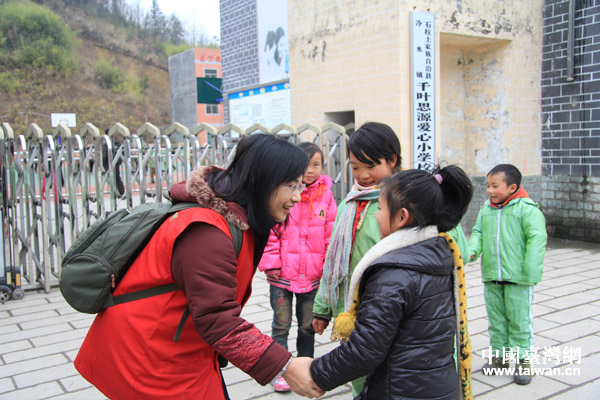 頂新公益基金會副秘書長周淑禎詢問留守兒童學習情況。(中國臺灣網 李徽 攝)