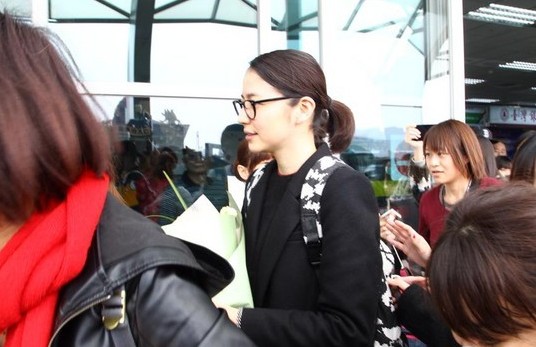 長(zhǎng)澤雅美戴粗框眼鏡、素顏抵臺(tái)。(臺(tái)媒圖)