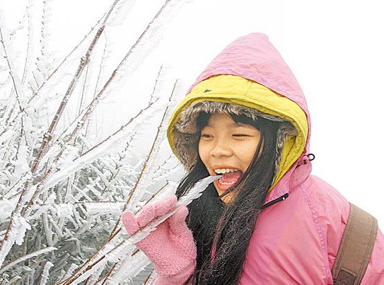 女游客看到霧淞直言像棒冰,忍不住咬了一口。來自臺媒