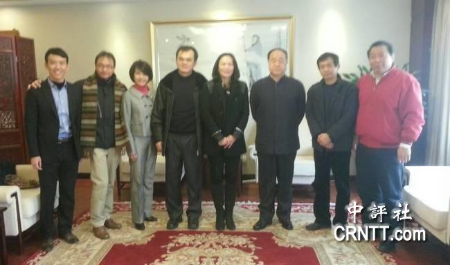 莫言允諾戴遐齡(右四)未來一定會到臺北市立大學講一場。海協會副秘書長王小兵(右一)陪同會見。(圖片來源:中評社)