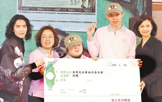 蕭敬騰(左)日前參加簽書會時,捐出版稅給喜憨兒等弱勢團體。(資料照片)