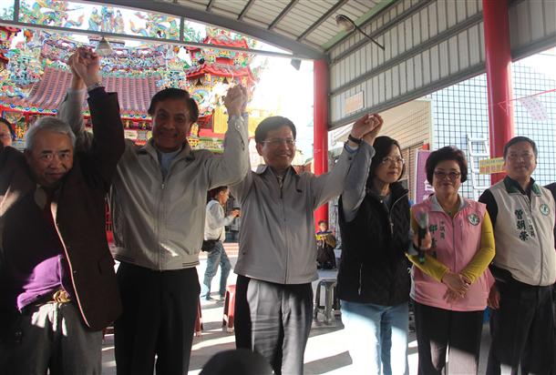 臺中市小英之友會下午舉辦兩場“關懷貧困、寒冬送暖”活動,蔡英文在前民進黨秘書長蘇嘉全的陪同下出席活動,林佳龍早在現(xiàn)場等候,蔡英文及蘇嘉全都高舉林佳龍的手喊“凍蒜”。
