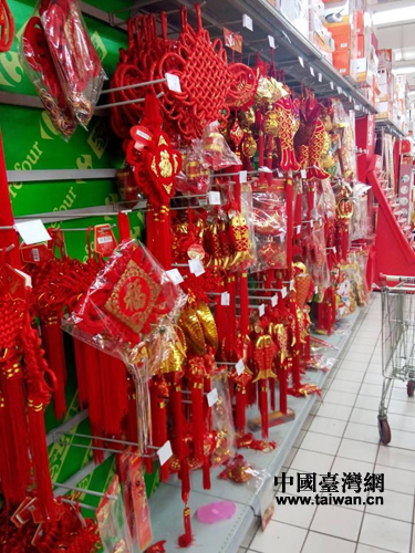 超市中喜氣的中國結。(中國臺灣網 秦彬 攝)