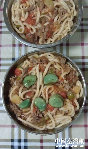 王文英自制的“小英西紅柿牛肉面”廣受好評,味道極佳。(中國臺灣網 王思羽 攝)