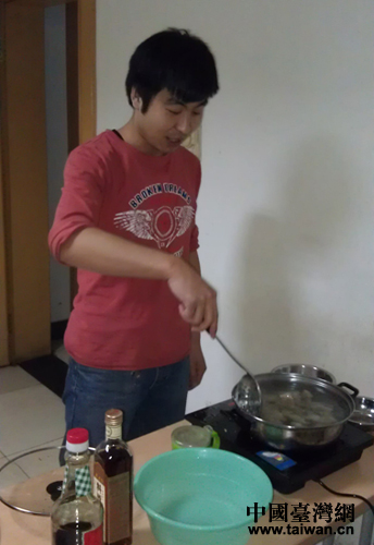 中國臺灣網員工李培剛過年煮餃子。(中國臺灣網 王思羽 攝)