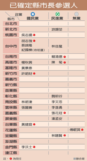 臺灣地區“七合一”選舉已確定參選的縣市長候選人。(圖片來自臺媒)
