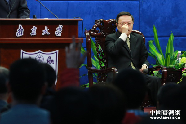王郁琦在南京大學(xué)與部分師生座談并演講。(中國(guó)臺(tái)灣網(wǎng) 田云鵬 攝)