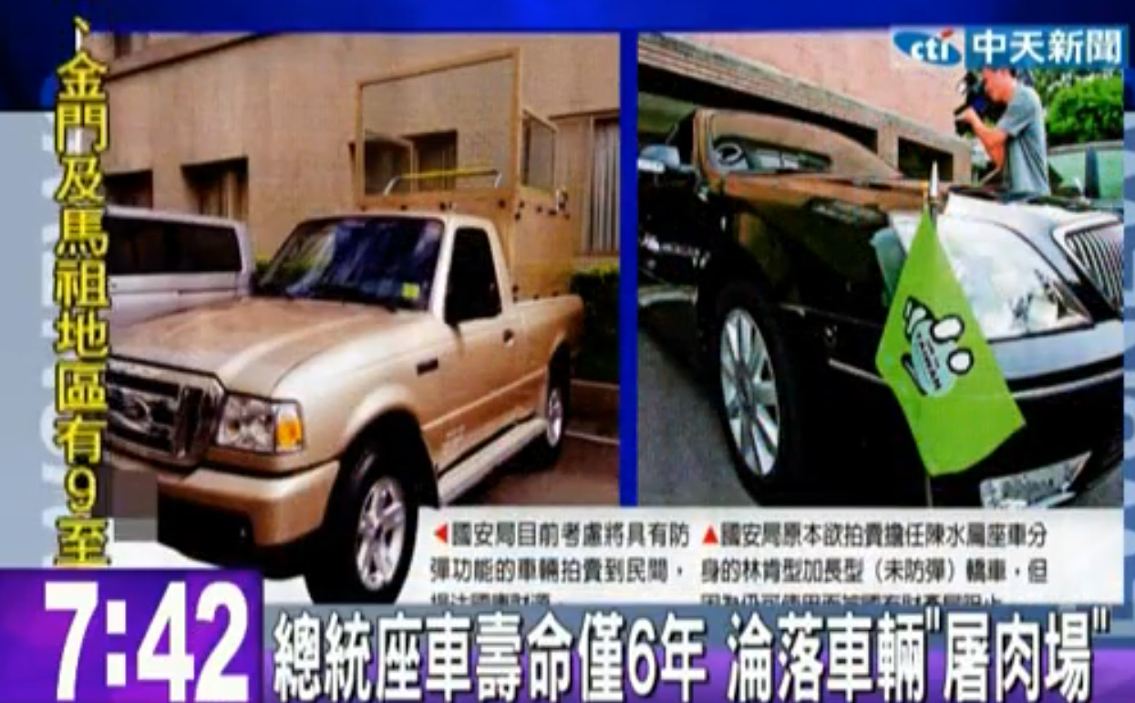 據(jù)報,正副領(lǐng)導人座駕壽命其實只有6年,為了確保乘車的安全,臺灣安全部門每4年還要更換特勤座車,除了轉(zhuǎn)換一班的特勤車輛外,達到6年以上還會面臨汰換。