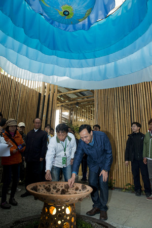 朱立倫參訪云林農博,與副縣長施克灑下“希望種子”。(臺媒圖)