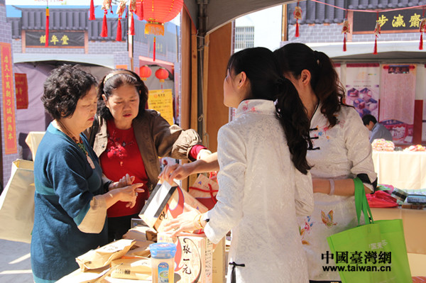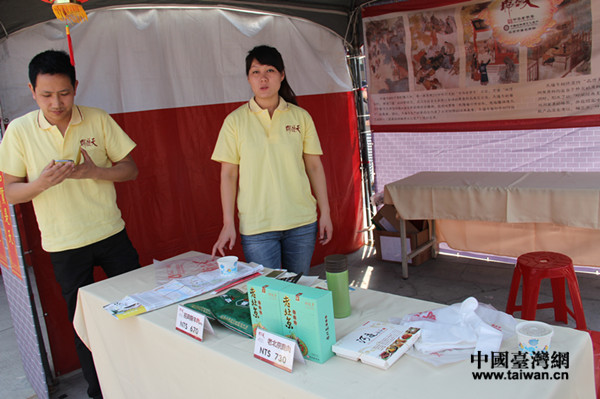 2月17日中午11時(shí),距離撤展還有5小時(shí),張一元帶來(lái)的二十箱茶葉僅剩下不到2箱,圖為臺(tái)灣客人在撤展前購(gòu)買(mǎi)茶葉。(中國(guó)臺(tái)灣網(wǎng) 李婷婷 攝)