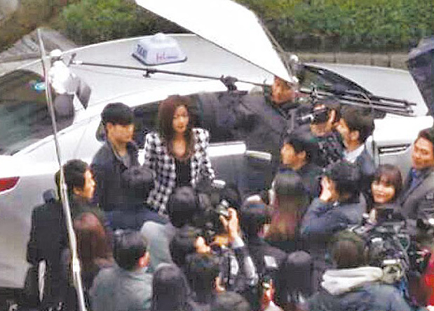 金秀賢(左)和全智賢昨天在首爾街頭拍外景。來自網絡
