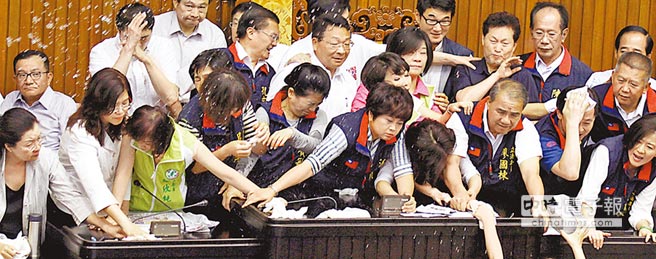 圖為去年6月“立法院會”爆發沖突的場面。(圖片來自臺媒)