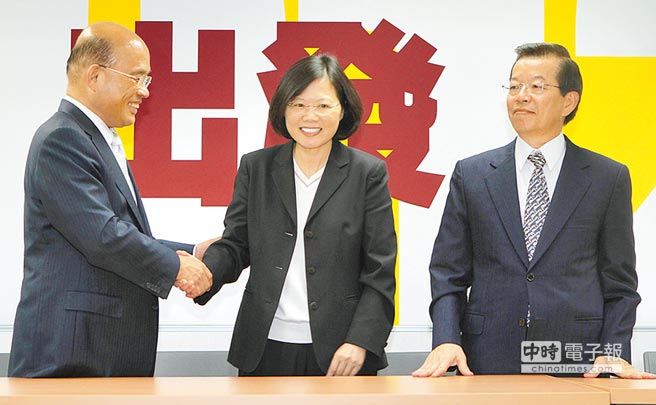 綠營大佬透露,只要謝長廷不選民進黨主席,蘇貞昌為避免傷元氣,也可能退出,三強爭霸的局面會出現變量。(圖片來源:臺灣中時電子報)