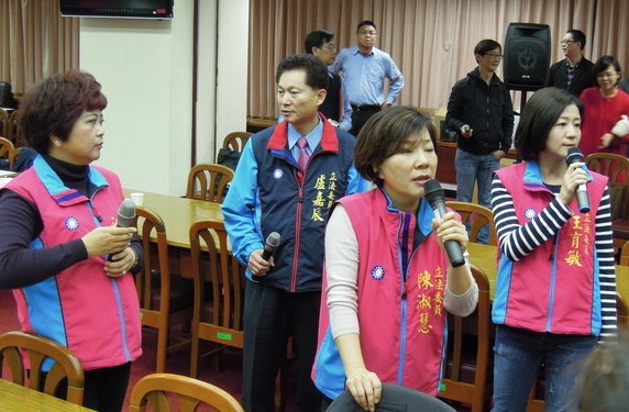 國民黨“立委”江惠貞、陳淑慧、王育敏13日上午7點半就開炮。(臺媒圖)