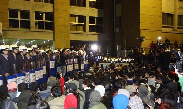 反服貿群眾23日晚間強占“行政院”遭警方驅離。(臺媒圖)
