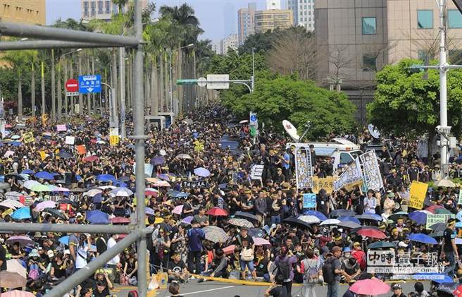 中國臺灣網3月30日消息 綜合臺灣媒體報道,反服貿活動持續進入第12天,反服貿團體今日下午1時,走上凱道靜坐抗議。靜坐群眾紛紛穿上黑色上衣,表達反服貿的訴求。