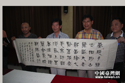 陳志聲在情系燕趙文化聯(lián)誼活動中進(jìn)行現(xiàn)場書法創(chuàng)作(中國臺灣網(wǎng)-蕪?fù)瑪z)
