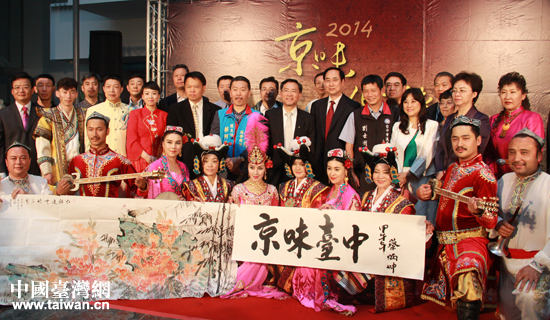 京味文化之旅活動(dòng)新聞交流會(huì)及首場(chǎng)兩岸書(shū)畫(huà)家筆會(huì)相關(guān)負(fù)責(zé)人、表演藝術(shù)者及書(shū)畫(huà)家合影留念。(中國(guó)臺(tái)灣網(wǎng) 高斯斯 攝)