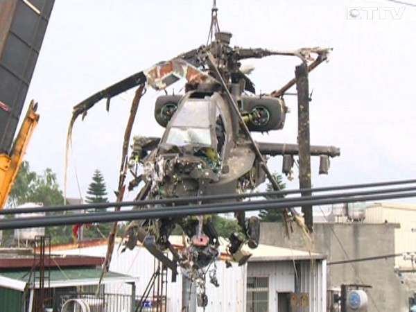 編號808的AH-64E的臺軍阿帕契直升機墜毀龍?zhí)叮_當局“國防部”仍在調查事發(fā)原因。(圖片來源:臺灣東森新聞)