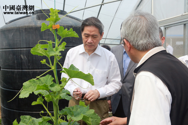 16日上午,中共中央臺辦、國務院臺辦主任張志軍考察浙江嘉興世合新農村開發有限公司。圖為張志軍與臺灣農業專家交流。(中國臺灣網 于斯文 攝)