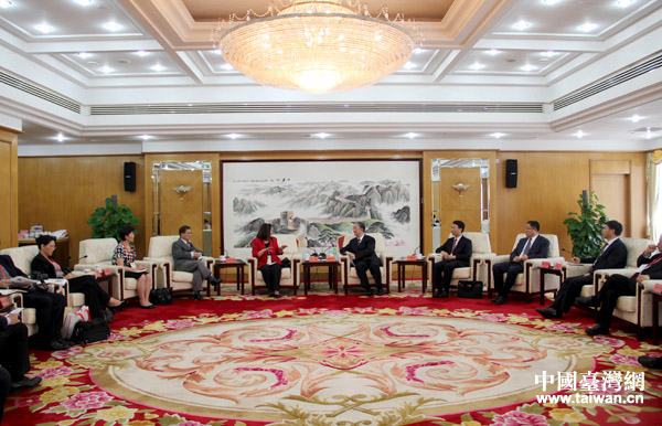 19日下午,中國統(tǒng)促會副會長桑國衛(wèi)在京會見了以林清為團(tuán)長的全美中國和平統(tǒng)一促進(jìn)會聯(lián)合會訪問團(tuán)一行。(中國臺灣網(wǎng) 普燕 攝)
