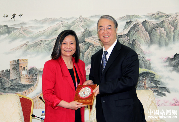 19日下午,中國統促會副會長桑國衛在京會見了以林清為團長的全美中國和平統一促進會聯合會訪問團一行。(中國臺灣網 普燕 攝)